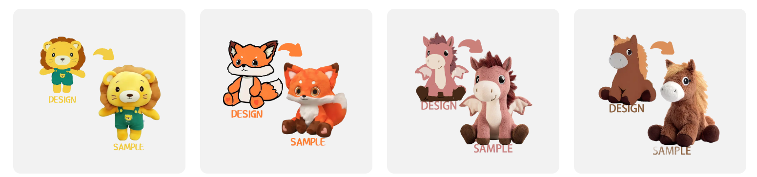 Viele Kunden fragen oft: „Ich habe einen Entwurf, kann man daraus ein Plüschtier machen?“ „Was ist die Mindestbestellmenge? Wird das fertige Produkt wie das Original aussehen?“ „Ist es für Kinder geeignet? Ist es sicher?“