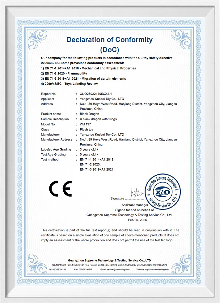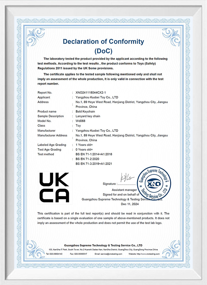 Die Materialien und Produktionsprozesse unserer benutzerdefinierten Spielzeuglösungen entsprechen den Qualitätsstandards: UKCA EN71, CE EN71, CPC, um sicherzustellen, dass sie absolut sicher sind.